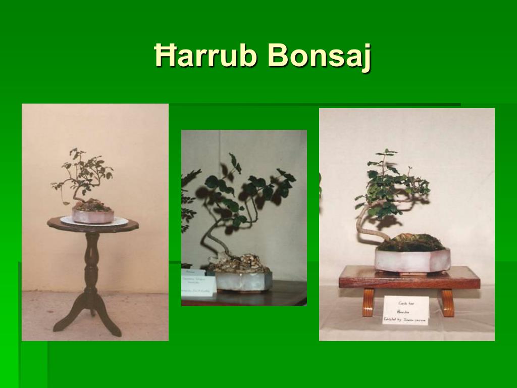 Tnissil tal-Ħarrub fil-Bonsaj Waqt li nfakkru lil kulħadd li huwa kontra l-liġi (u kontra l-imħabba lejn l-ambjent naturali li l-għaqda tagħna tħajjar lil kulħadd sabiex ikollu), illi ħarrub u siġar ieħor ma jinqalgħux mis-selvaġġ u mingħajr permess, ngħidu li ftit hemm ċans li ħarrub maqlugh hekk, jgħix.