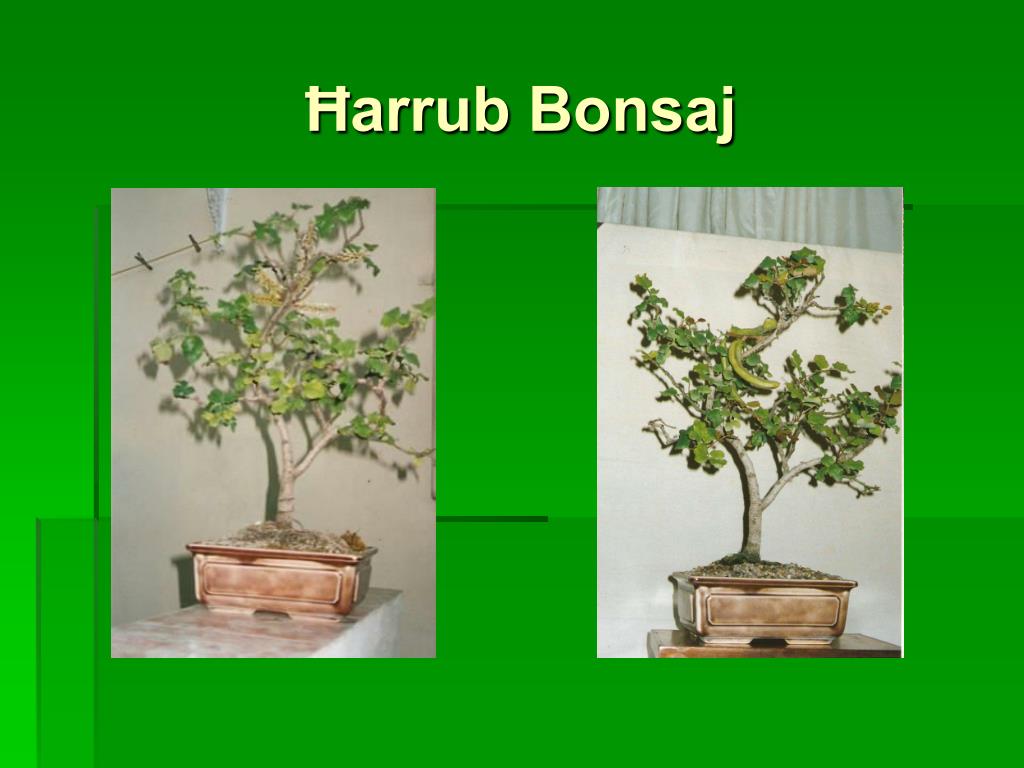Kura tal-Ħarruba bħala bonsaj • Difett kbir tal-ħarruba hija d-daqs kbir tal-weraq. • Diffiċli jkollok siġra folta għax il-weraq jikbru fuq zkuk iżgħar li jkunu kemmxejn twal bejn werqa u oħra. • Għalhekk il-ħarrub jidher isbaħ meta jitkabbar daqsxejn. • Ma tantx nirrakkomandah għall-”mame”