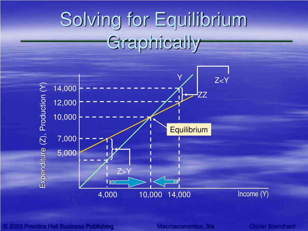 Z<Y Expenditure (Z), Production (Y) Z>Y Income (Y) Solving for Equilibrium Graphically Y 14,000 ZZ 12,000 10,000 Equilibrium 7,000 5,000 4,000 10,000 14,000