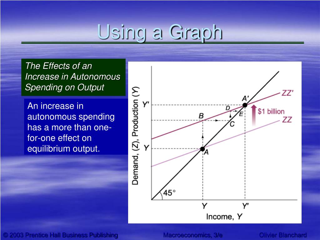 Using a Graph The Effects of an Increase in Autonomous Spending on Output An increase in autonomous spending has a more than one-for-one effect on equilibrium output.