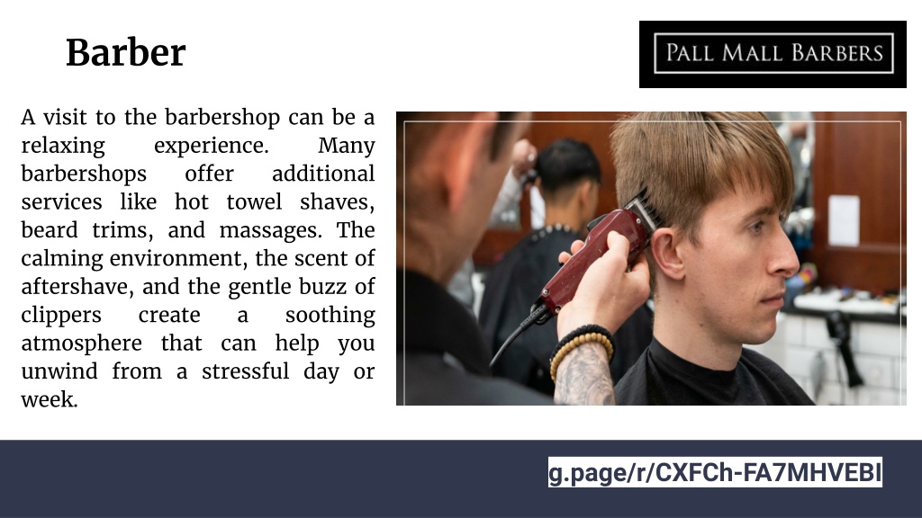 At Pall Mall Barbers, you can enjoy a professional haircut that is tailored to your unique style and preferences. With years of experience and a team of skilled barbers, they offer a range of haircuts and styles that will leave you feeling confident and looking sharp.<br><br>Click here for more information : https://www.pallmallbarbers.com/location/pall-mall-barbers-soho/<br><br>Address : 266, 270 Regent St., London W1B 3AH, United Kingdom<br>Phone : 442079302592<br><br>Find Us On Google map : https://g.page/r/CXFCh-FA7MHVEBI<br><br>Next Slide : https://bit.ly/3KTR64O