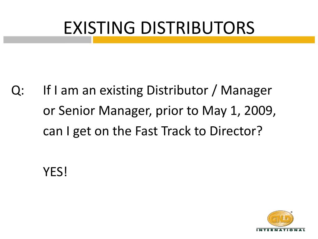 EXISTING DISTRIBUTORS Q: If I am an existing Distributor / Manager or Senior Manager, prior to May 1, 2009, can I get on the Fast Track to Director? YES!