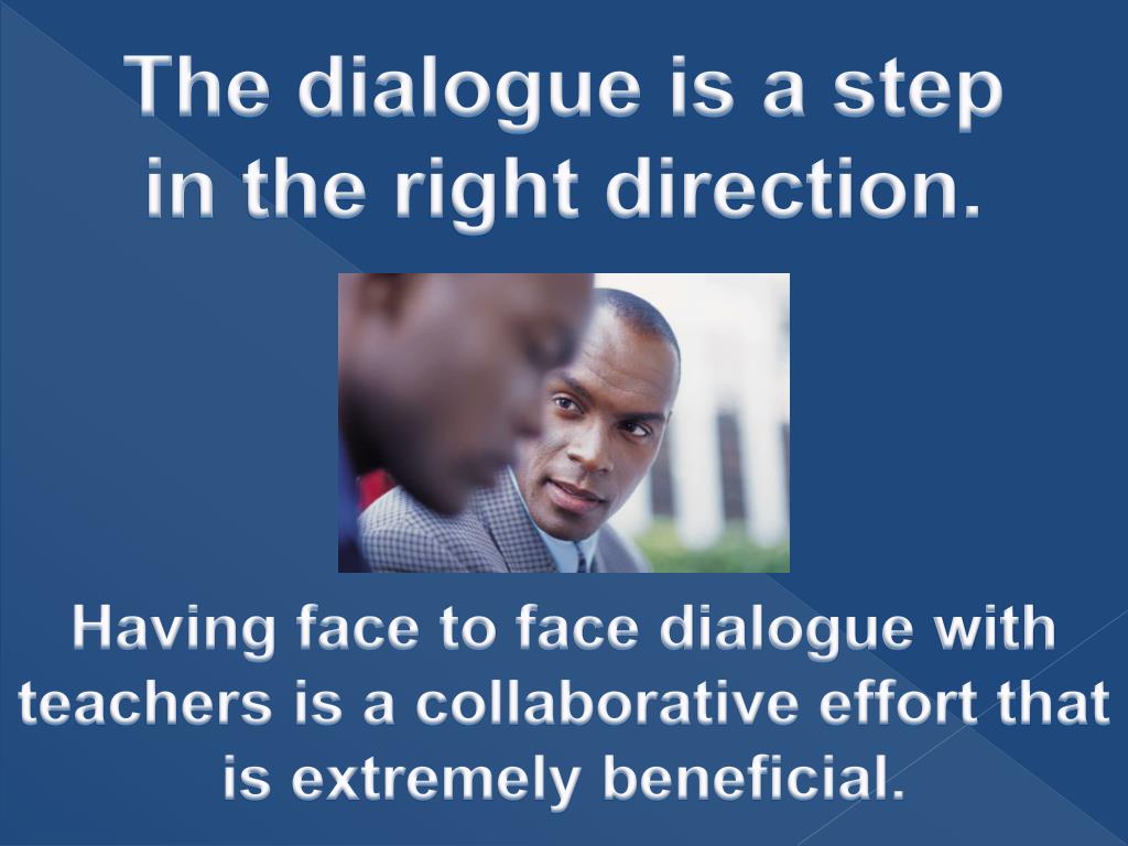 The dialogue is a step in the right direction. Having face to face dialogue with teachers is a collaborative effort that is extremely beneficial.