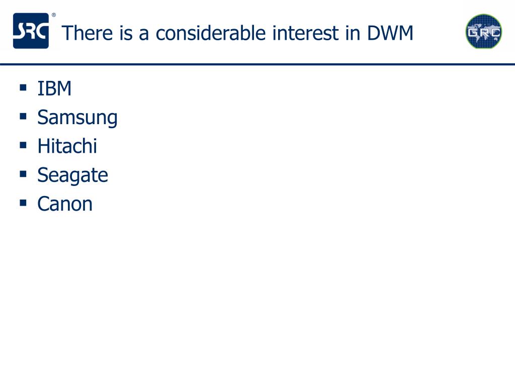 There is a considerable interest in DWM • IBM • Samsung • Hitachi • Seagate • Canon