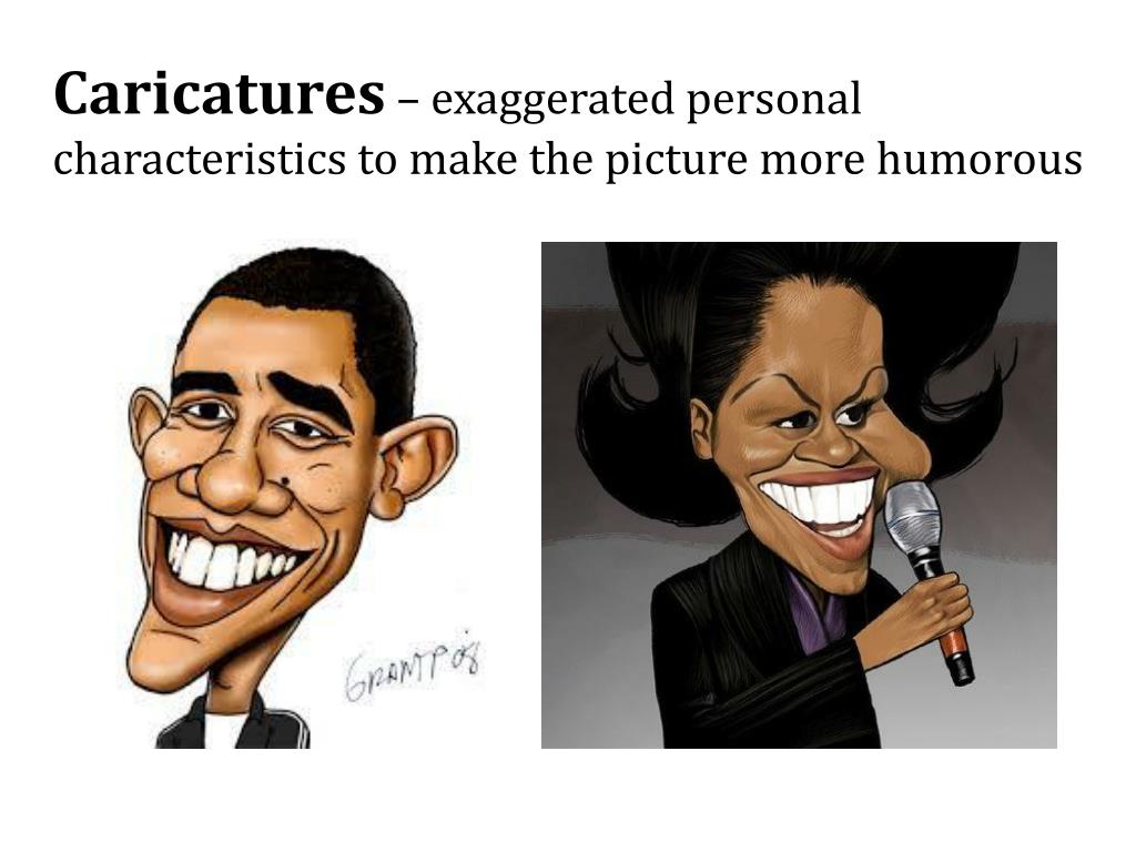 Caricatures – exaggerated personal characteristics to make the picture more humorous