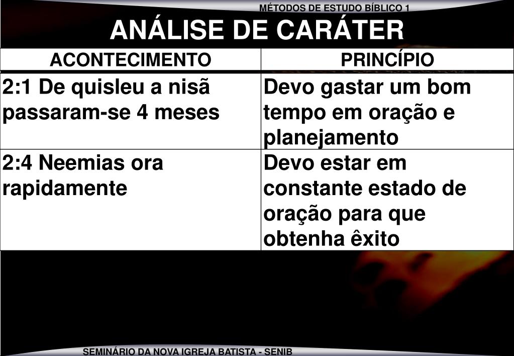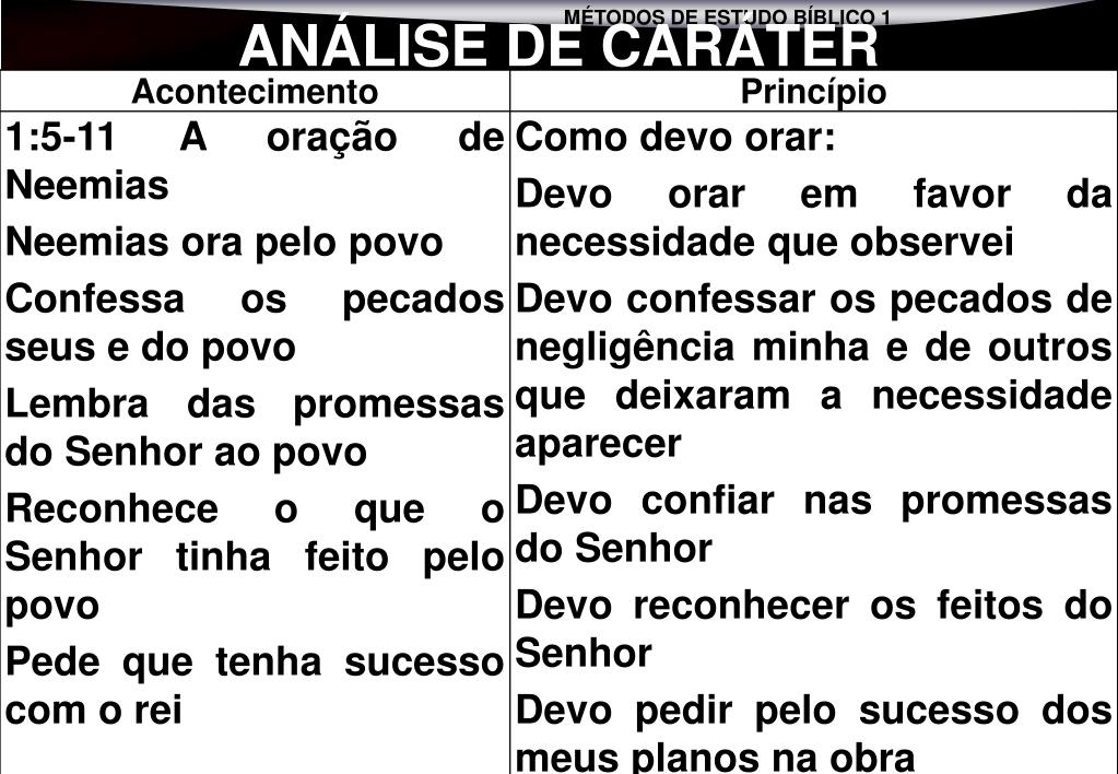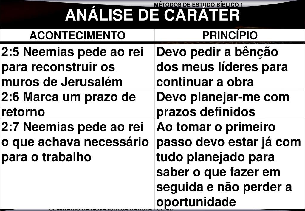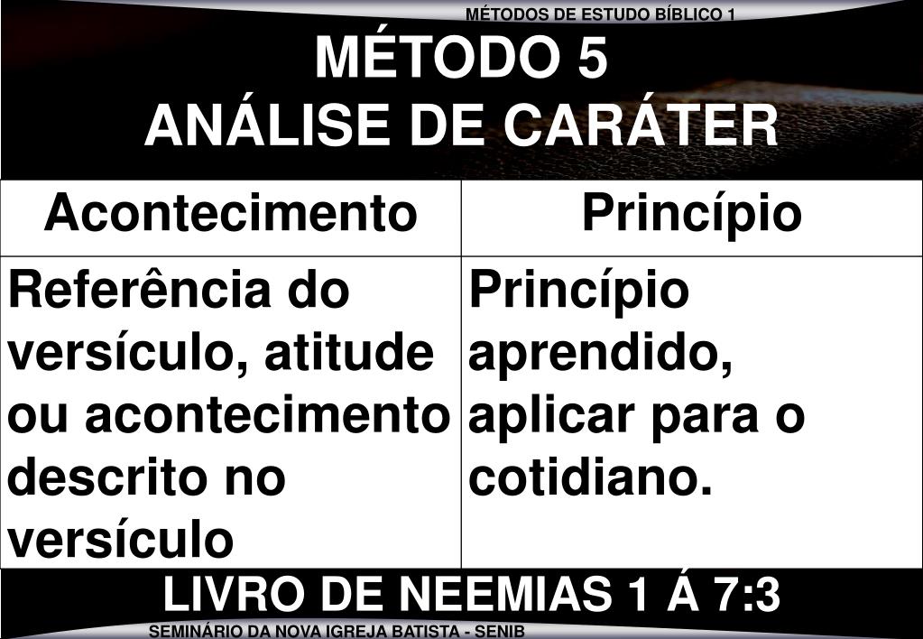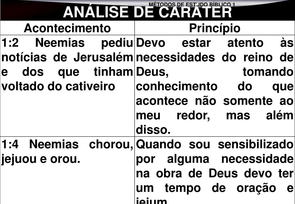 se então MÉTODO 5 ANÁLISE DE CARÁTER LIVRO DE NEEMIAS 1 Á 7:3
