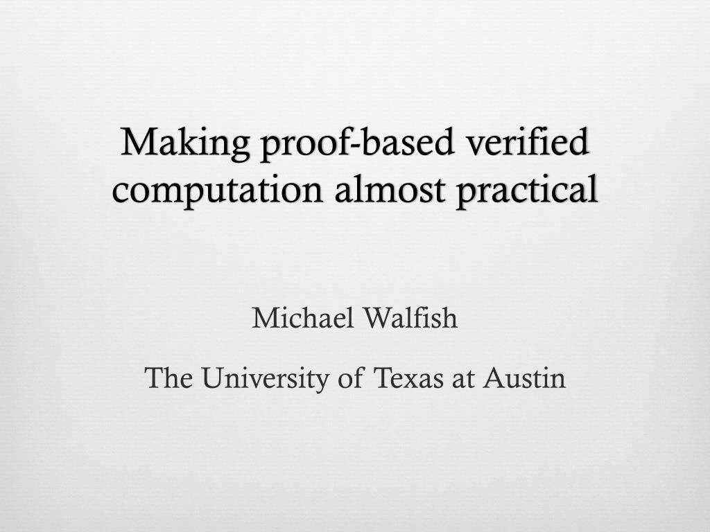 Making proof-based verified computation almost practical Michael Walfish The University of Texas at Austin