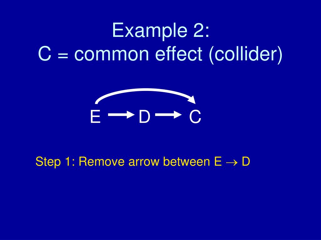 Example 2: C = common effect (collider) E D C Step 1: Remove arrow between E D