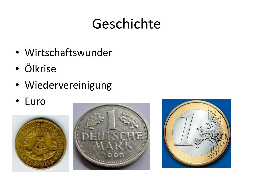 Geschichte • Wirtschaftswunder • Ölkrise • Wiedervereinigung • Euro