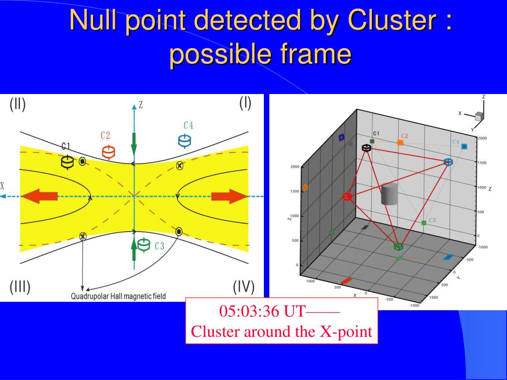 Null point detected by Cluster : possible frame 05:03:36 UT—— Cluster around the X-point