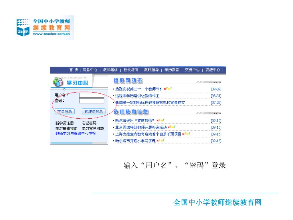 输入“用户名”、“密码”登录 全国中小学教师继续教育网