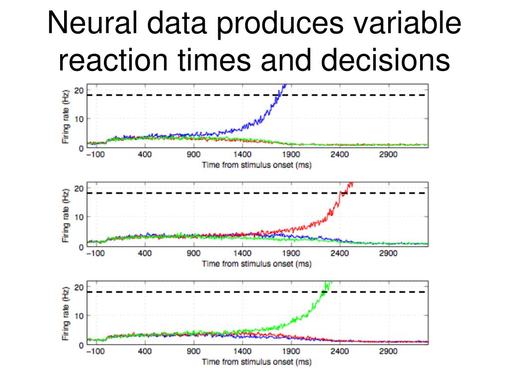 Multiple alternative simultaneous integration decision making • Similar to previous random-dot motion tasks • Three directions of coherent motion • Subject has to saccade in direction of highest perceived motion (highest coherence) Niwa and Ditterich, 2008
