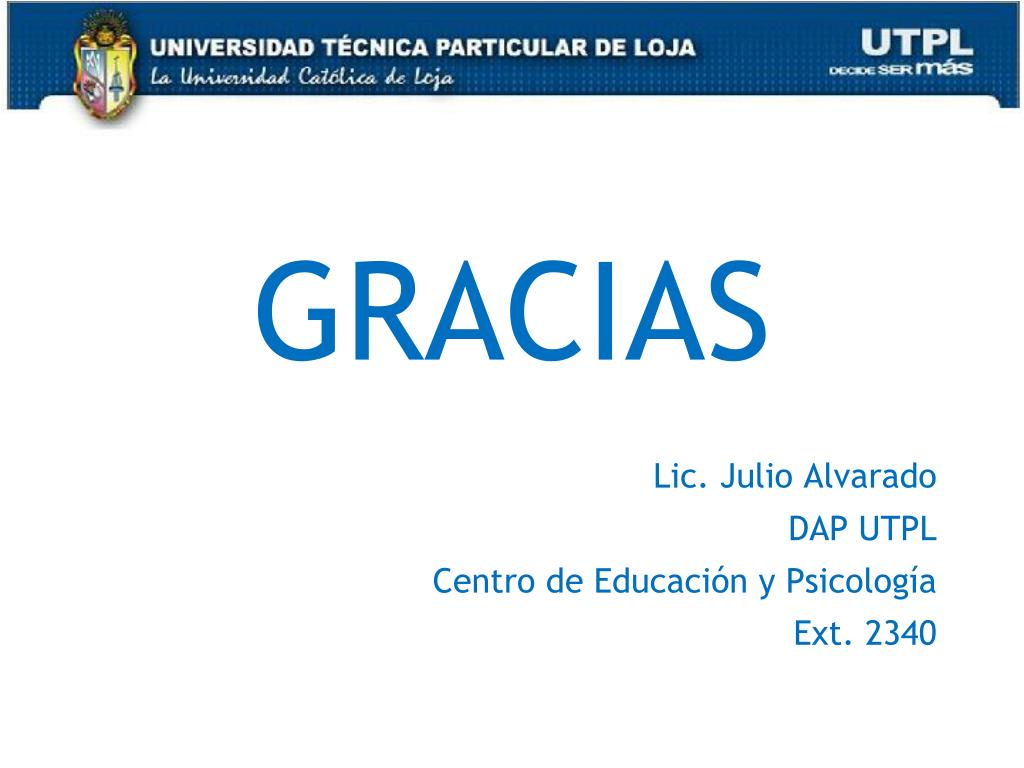 GRACIAS Lic. Julio Alvarado DAP UTPL Centro de Educación y Psicología Ext. 2340