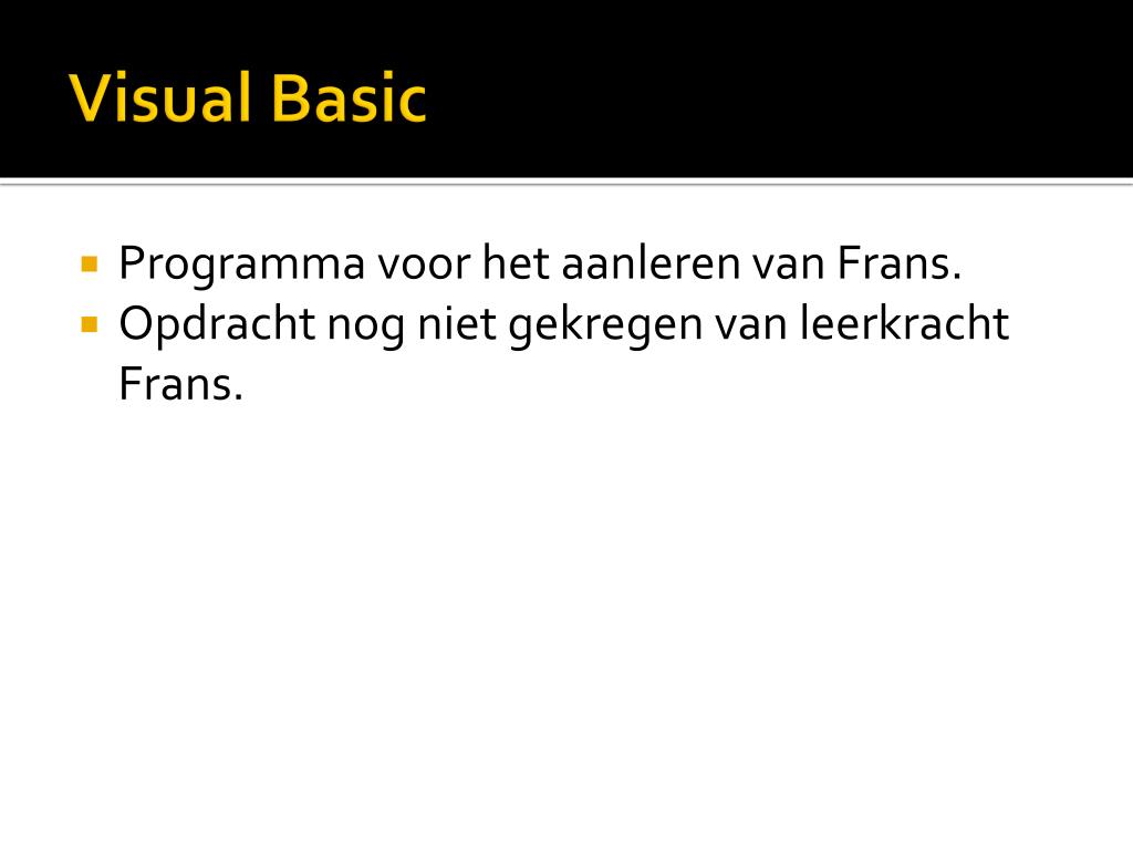 Visual Basic • Programma voor het aanleren van Frans. • Opdracht nog niet gekregen van leerkracht Frans.