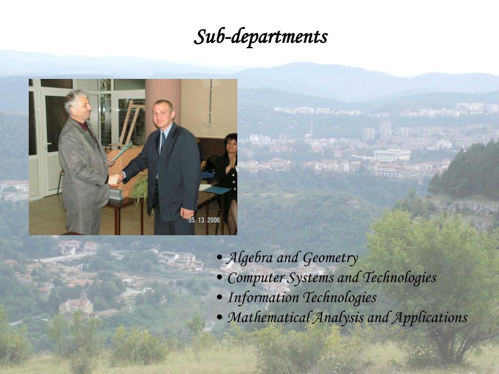 Sub-departments • Algebra and Geometry • Computer Systems and Technologies • Information Technologies • Mathematical Analysis and Applications