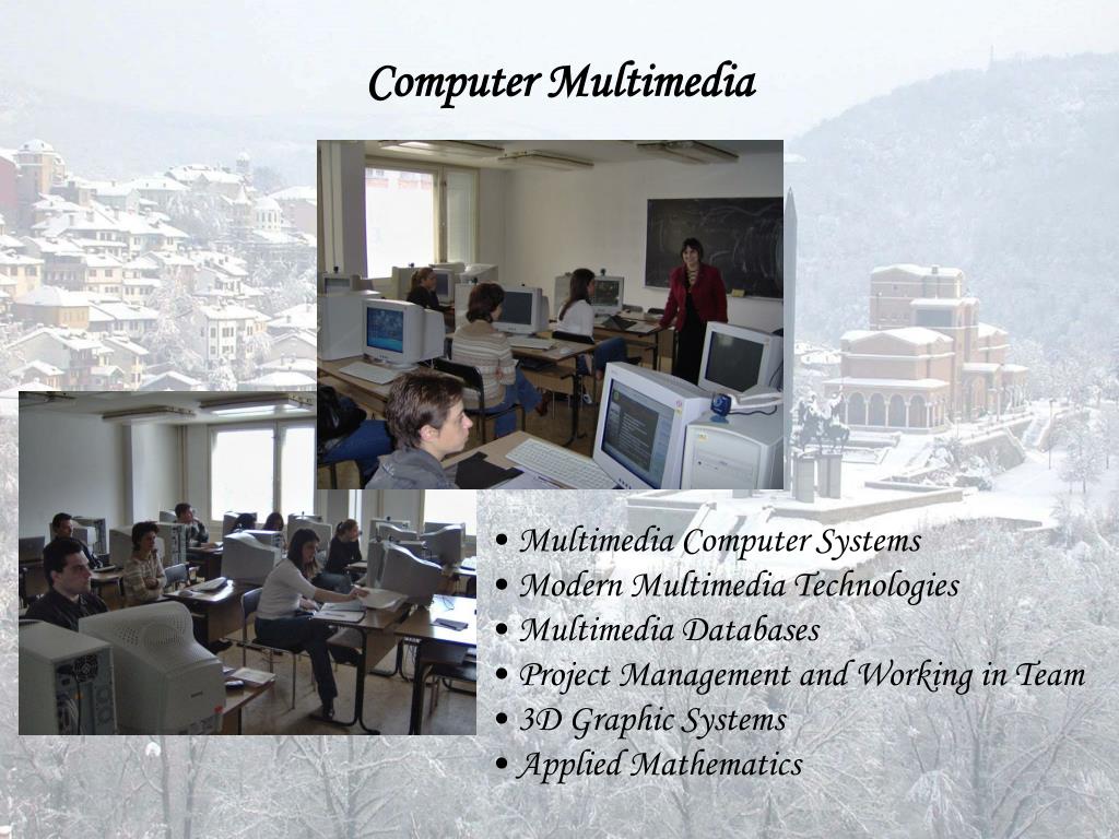 Computer Multimedia • Multimedia Computer Systems • Modern Multimedia Technologies • Multimedia Databases • Project Management and Working in Team • 3D Graphic Systems • Applied Mathematics