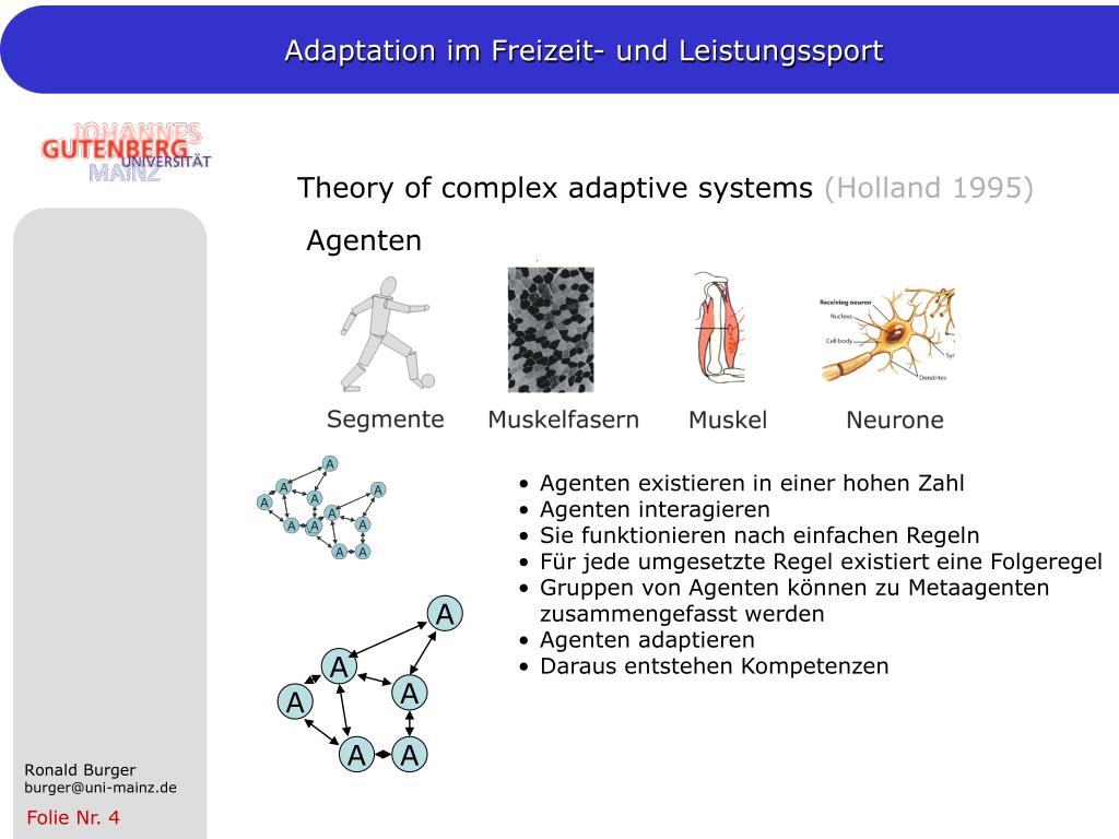 Theory of complex adaptive systems (Holland 1995) Agenten Segmente Muskel Muskelfasern Neurone