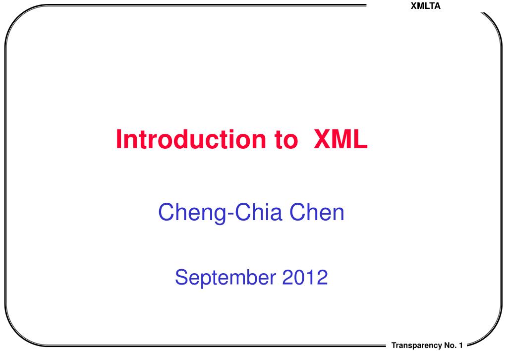 Introduction to XML. Cheng-Chia Chen September 2012. contents. What is XML ? Where does XML come from? What is its status? Why do we need XML ? XML v.s Other formats Core XML Specifications and APIs How can we do with XML? XML sites