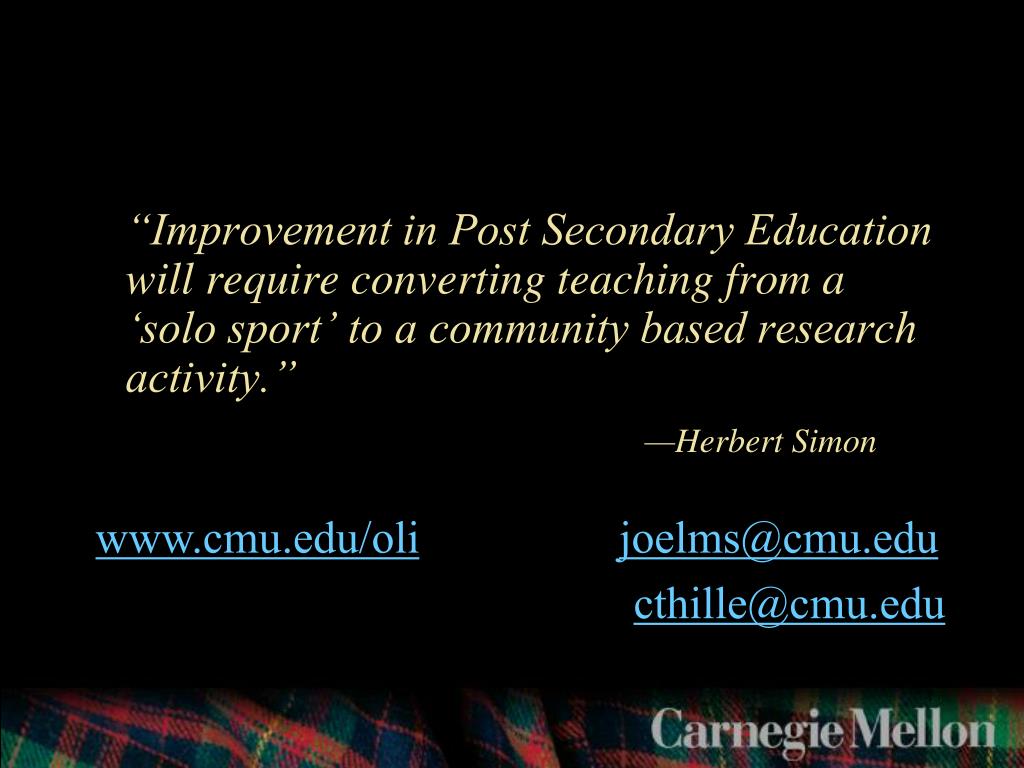“Improvement in Post Secondary Education will require converting teaching from a ‘solo sport’ to a community based research activity.” —Herbert Simon www.cmu.edu/olijoelms@cmu.edu cthille@cmu.edu