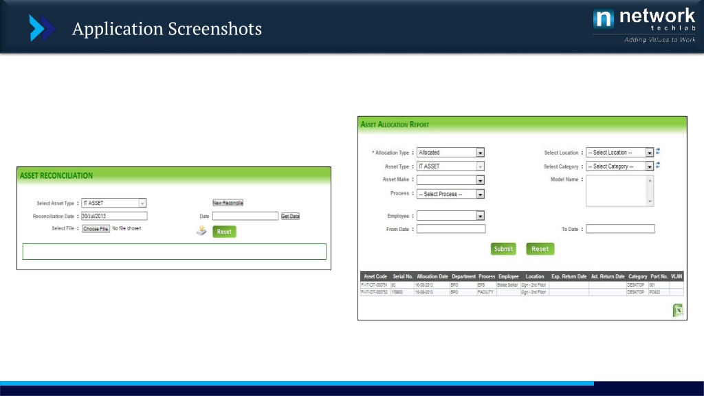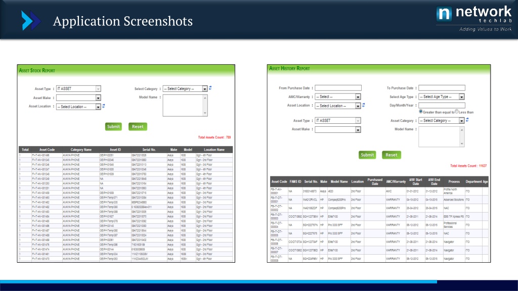 6. Dashboards and Reports • Allocation Report 1 • Gate pass Report 2 • Asset Stock Report 3 Asset Status • Asset History Report 4 • Asset Tracking Report 5 6 • Summary Report 7 • Dashboard Report 8 • Returnable Report 9 • Call Log Report