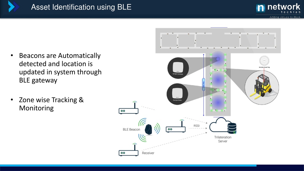 10. Asset Identification using BLE Beacons are Automatically detected and location is updated in system through BLE gateway Zone wise Tracking & Monitoring