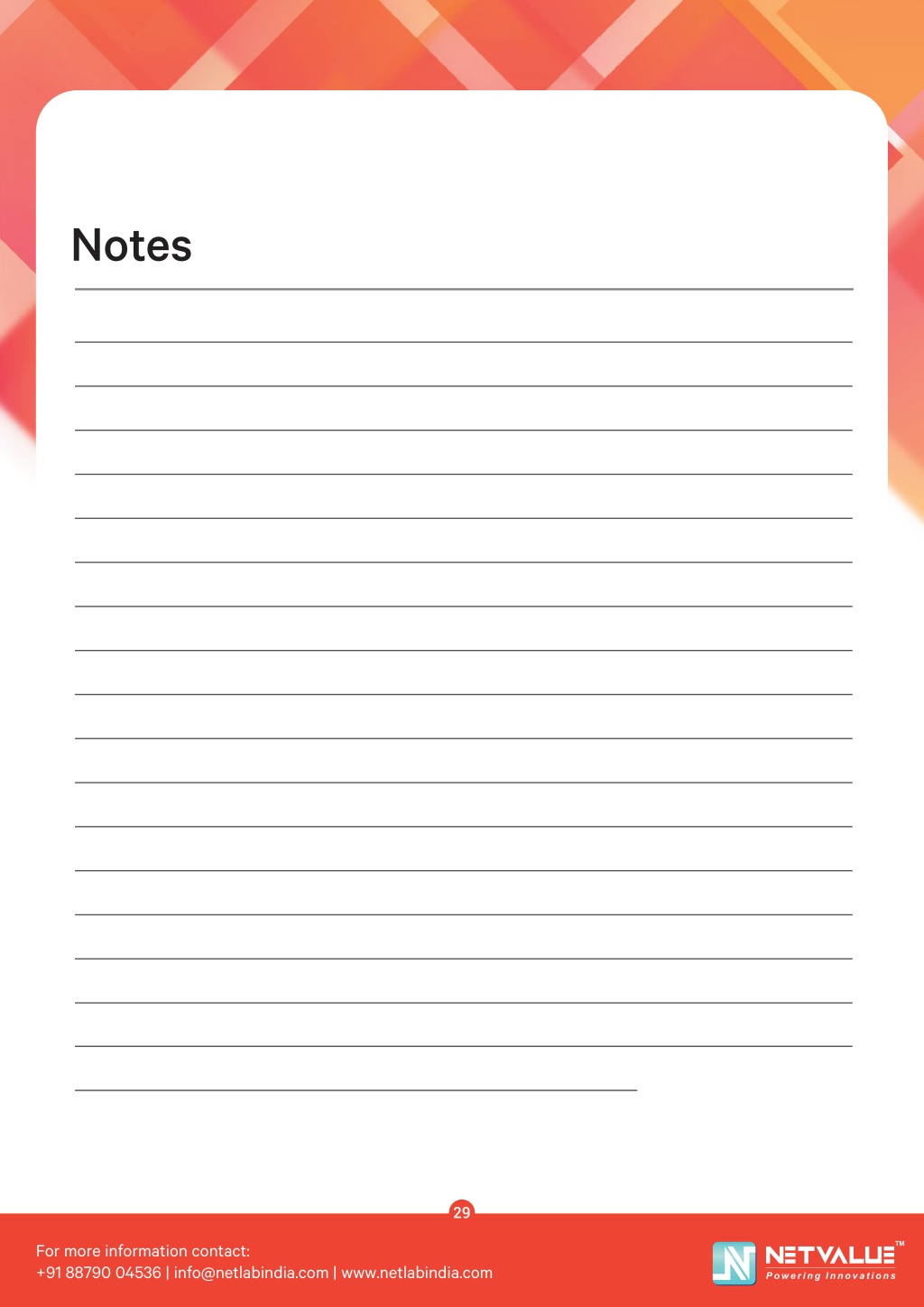 Notes 29 TM For more information contact: +91 88790 04536 | info@netlabindia.com | www.netlabindia.com