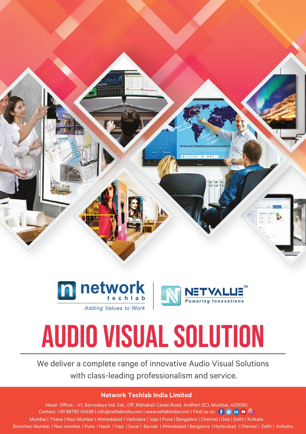 Global Alliance Esteemed Clients TM AUDIO VISUAL SOLUTION Network Techlab (I) Pvt. Ltd. 41, Sarvodaya Industrial Estate, Opp. Paper Box, Off. Mahakali Caves Road, Andheri East, Mumbai - 400093, India. Head- Ofice: - 41, Sarvodaya Ind. Est., Of. Mahakali Caves Road, Andheri (E.), Mumbai, 400093 Contact : 022-6681 4141 | info@netlabindia.com | www.netlabindia.com | Find us on: Contact: +91 88790 04536 | info@netlabindia.com | www.netlabindia.com | Find us on: Chetan Savla | E: chetan@netlabindia.com | M: +91-9167995827 Mumbai | Thane | Navi Mumbai | Ahmedabad | Vadodara | Vapi | Pune | Bangalore | Chennai | Goa | Delhi | Kolkata Branches: ???????????????????????????????????????????????????????????????????????????????????????????????????????????????????????????? Branches: Mumbai | Navi mumbai | Pune | Nasik | Vapi | Surat | Baroda | Ahmedabad | Bangalore | Hyderabad | Chennai | Delhi | Kolkatta
