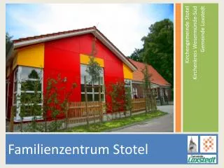 Zielsetzungen bei der Bildung eines Familienzentrums • Es geht bei der Bildung eines Familienzentrums in Stotel nicht darum, die Angebote der eingebundenen Institutionen in die Hand eines Trägers zu überführen. • Vielmehr ist Ziel, die einzelnen Anbieter in ihrer Vielfalt zu erhalten und ein gemeinsames Netzwerk „Familienzentrum“ zu bilden. • Alle eingebundenen Stellen bringen die ihnen zur Verfügung stehenden Ressourcen in das Netzwerk ein, ohne aber die abschließende Verantwortung für die von ihnen durchgeführten Maßnahmen abzugeben.