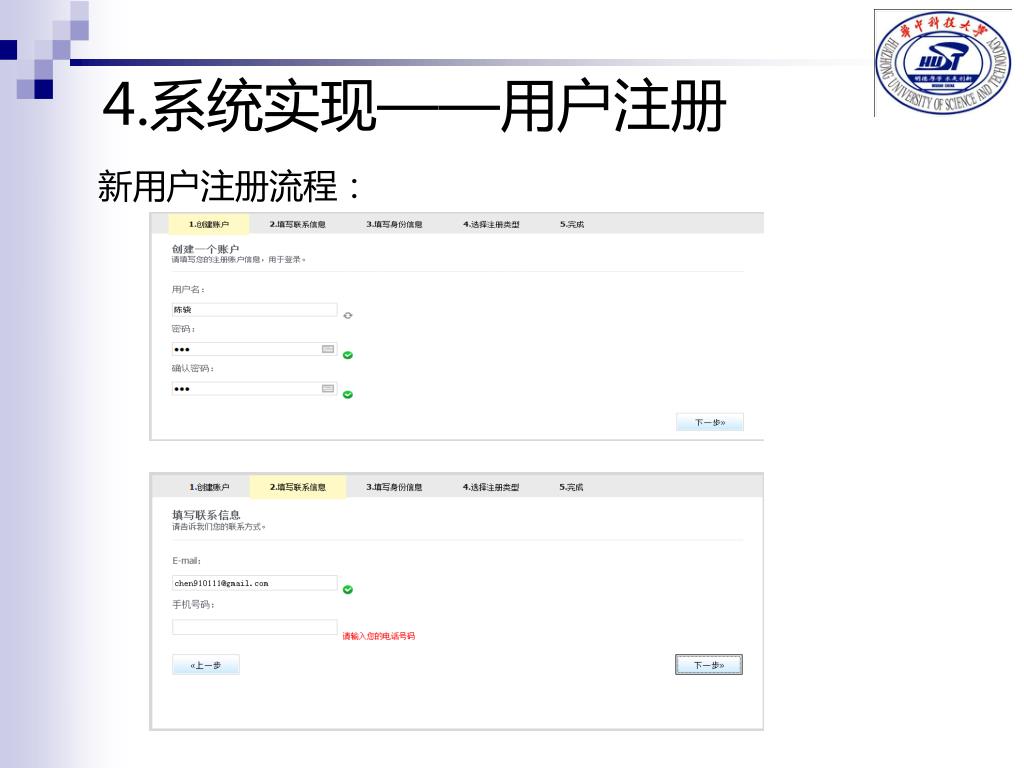 4.系统实现——用户注册 新用户注册流程: