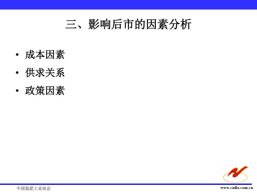 三、影响后市的因素分析 • 成本因素 • 供求关系 • 政策因素