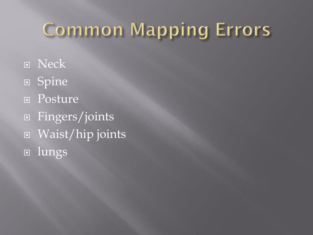 Common Mapping Errors • Neck • Spine • Posture • Fingers/joints • Waist/hip joints • lungs