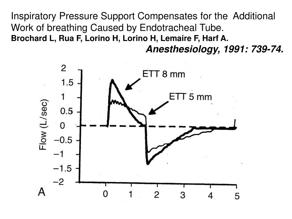 Inspiratory Pressure Support Compensates for the Additional Work of breathing Caused by Endotracheal Tube. Brochard L, Rua F, Lorino H, Lorino H, Lemaire F, Harf A. Anesthesiology, 1991: 739-74.