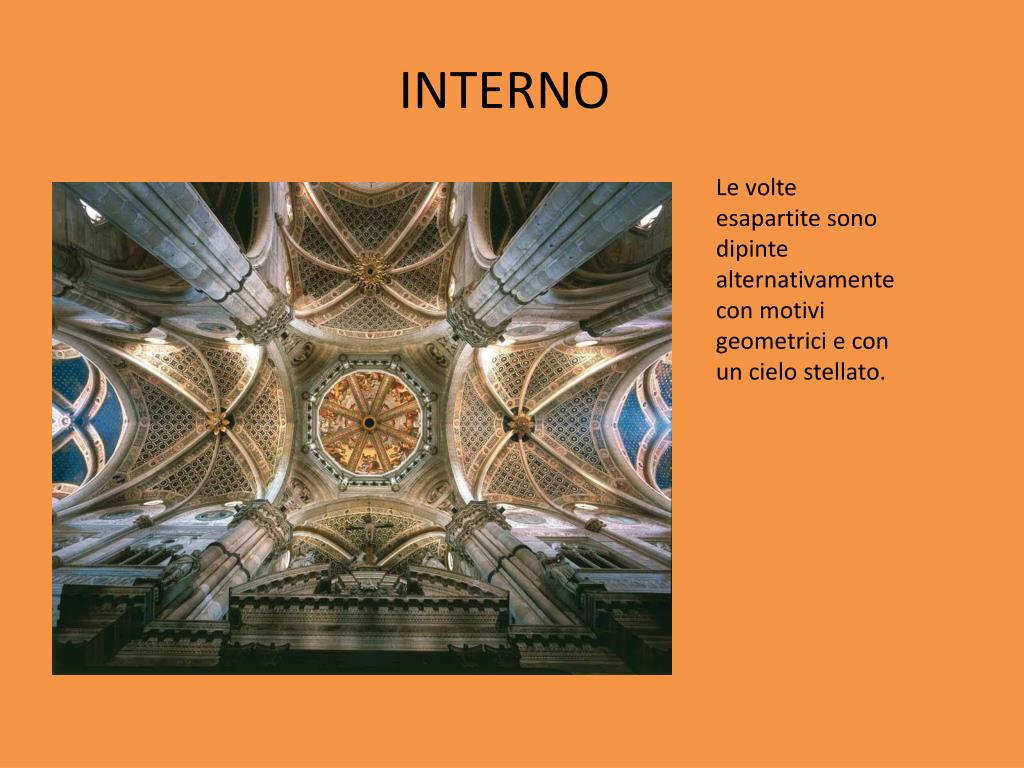 INTERNO Le volte esapartite sono dipinte alternativamente con motivi geometrici e con un cielo stellato.