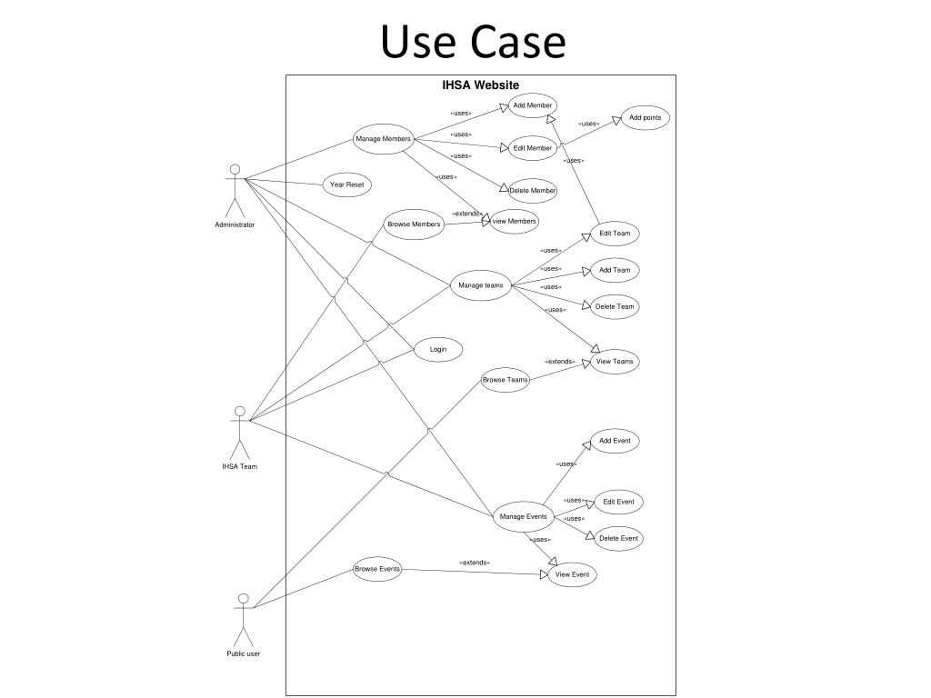 Use Case Requirements • Browse (Administration and Users) • Members • Teams • Events • View (Administration and Users) • Members • Teams • Events • Manage (Administrator) • Teams • Events • Riders