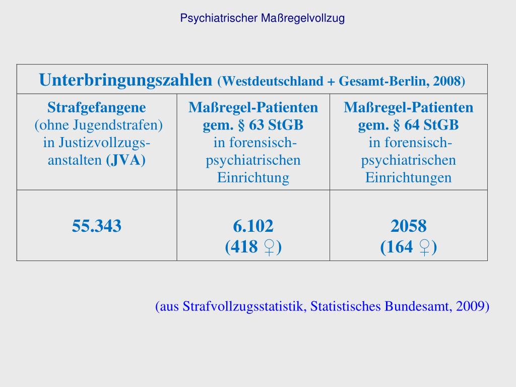 Psychiatrischer Maßregelvollzug (aus Strafvollzugsstatistik, Statistisches Bundesamt, 2009)