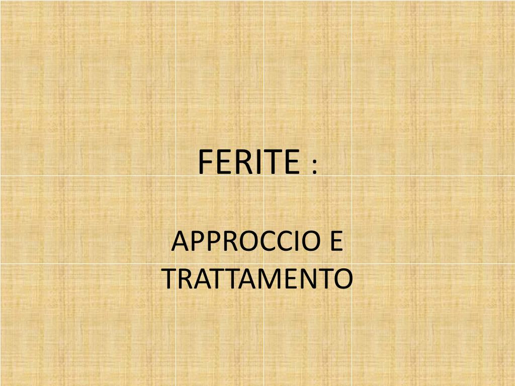 A SECONDA DELLA PROFONDITA: • FERITA SUPERFICIALE • FERITA PROFONDA • FERITA PENETRANTE( IL TRAMITE E’ IN COMUNICAZIONE CON UNA CAVITA’ NATURALE: PERITONEO, SPAZIO PLEURICO) • FERITA TRAPASSANTE( A TUTTO SPESSORE, C’E’ UNA LESIONE DI ENTRATA E UNA LESIONE DI USCITA).