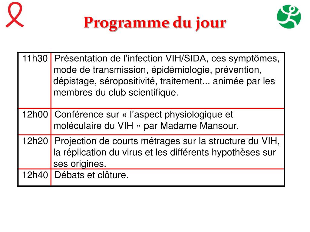 Objectifs de cette manifestation Permettre à nos invités de profiter pleinement de cette journée en proposant un programme riche en communications. Actualiser les connaissances sur l’infection à VIH/SIDA.