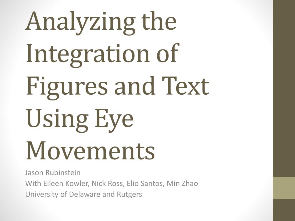 Analyzing the Integration of Figures and Text Using Eye Movements Jason Rubinstein With Eileen Kowler, Nick Ross, Elio Santos, Min Zhao University of Delaware and Rutgers