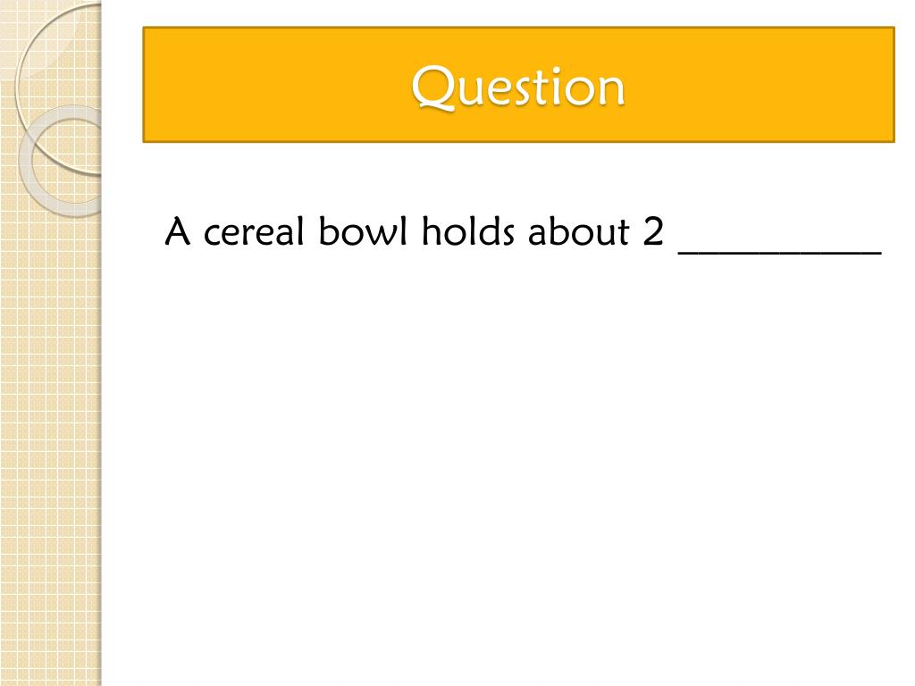 Question A cereal bowl holds about 2 __________