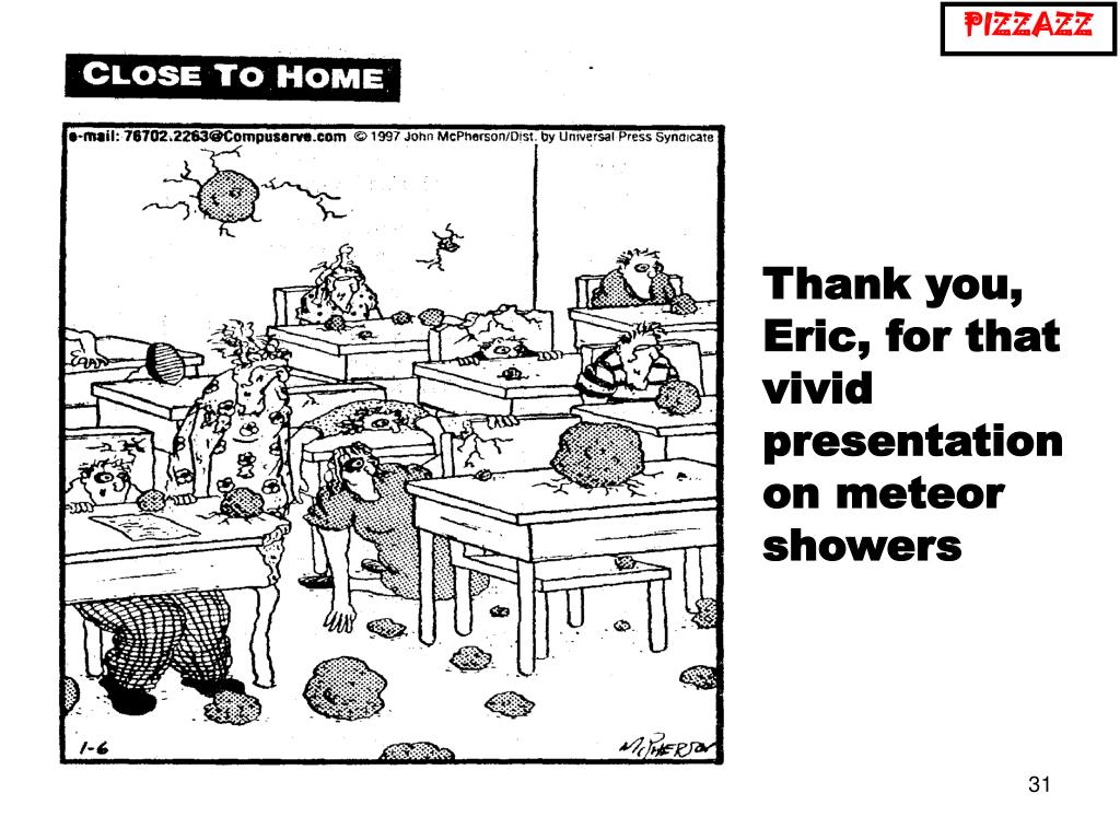 PIZZAZZ • Thank you, Eric, for that vivid presentation on meteor showers
