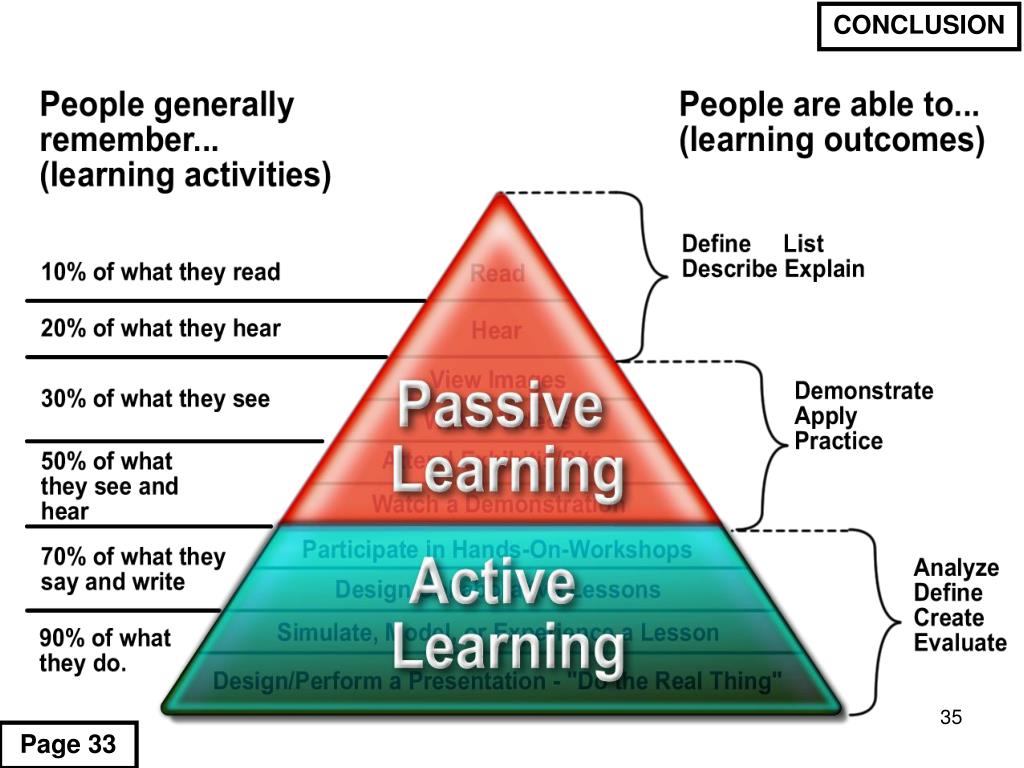 CONCLUSION 3 - 2 – 1 • Three things that interested me • Two things I’d like to know more about • One big idea (to use at home) Page 32