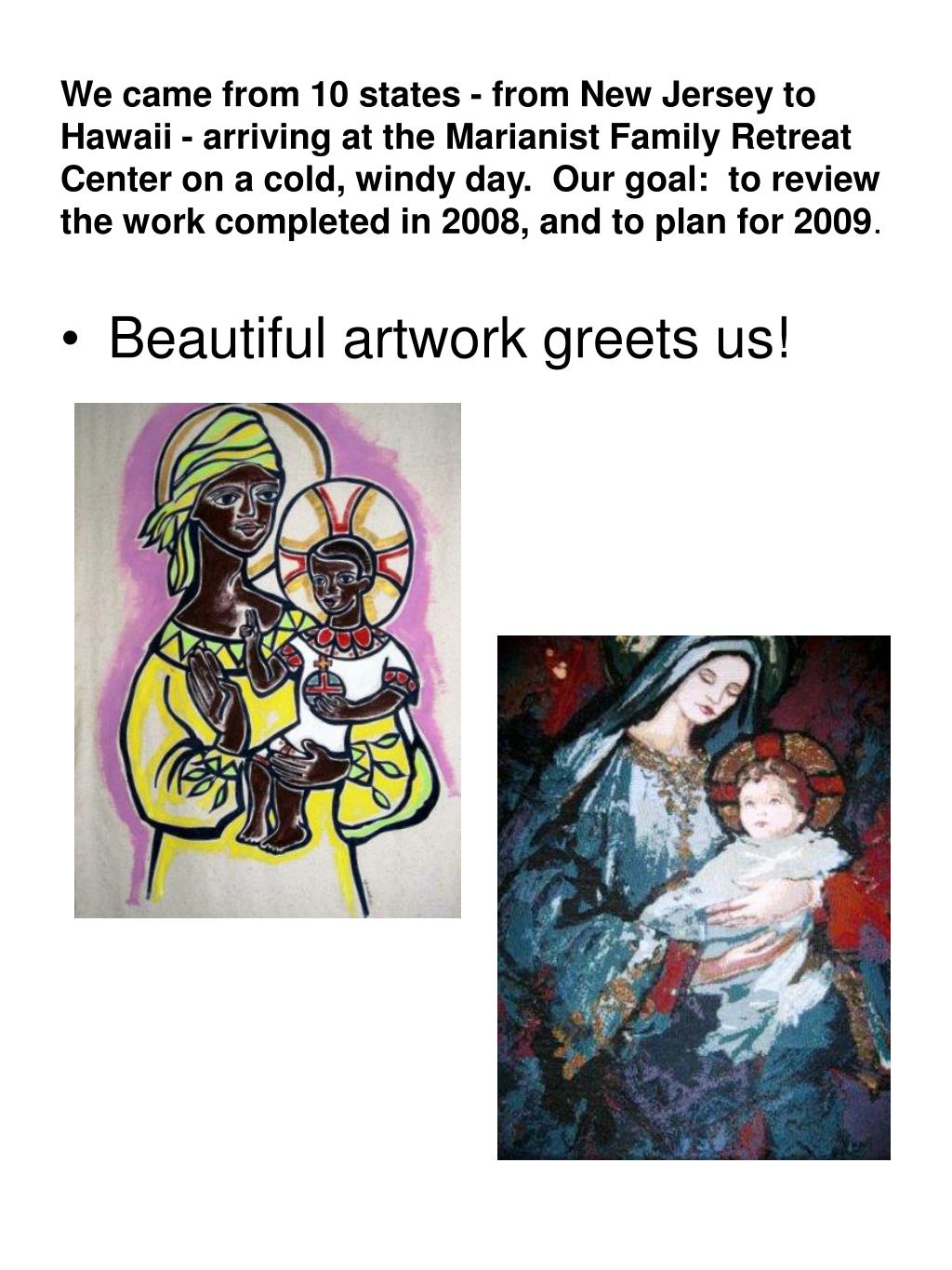 We came from 10 states - from New Jersey to Hawaii - arriving at the Marianist Family Retreat Center on a cold, windy day. Our goal: to review the work completed in 2008, and to plan for 2009. • Beautiful artwork greets us!