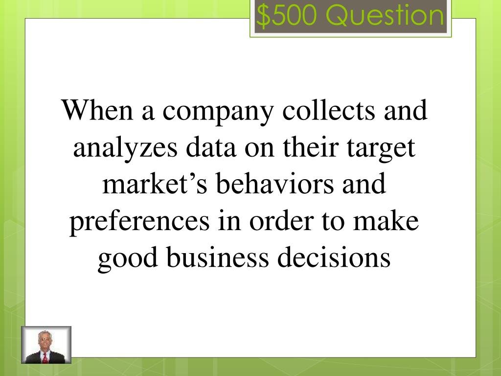 $500 Question When a company collects and analyzes data on their target market’s behaviors and preferences in order to make good business decisions