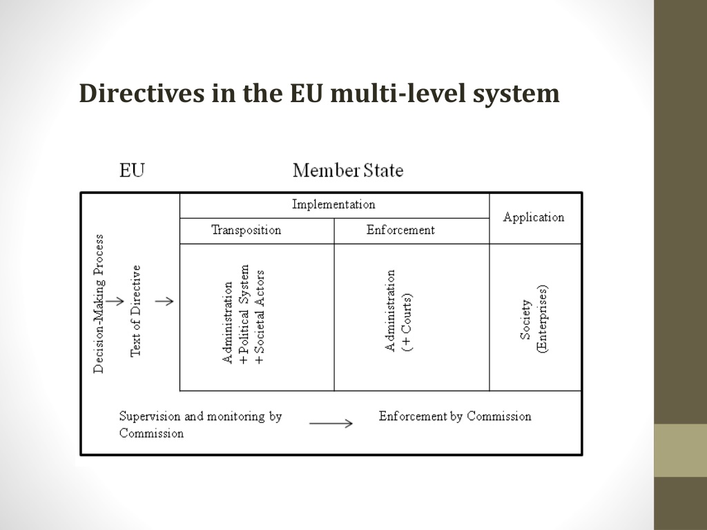 ‘Community environmental legislation will only be effective if it is fully implemented and enforced by Member States.’ Statement of the European Council EC 6-1990, 18-21 note 4. • Development of strong environmental governance required • Impossible to understand national environmental policy without reference to EU