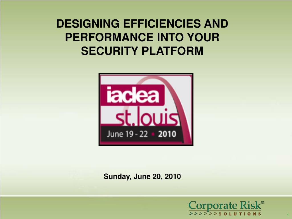 DESIGNING EFFICIENCIES AND PERFORMANCE INTO YOUR SECURITY PLATFORM Sunday, June 20, 2010 1