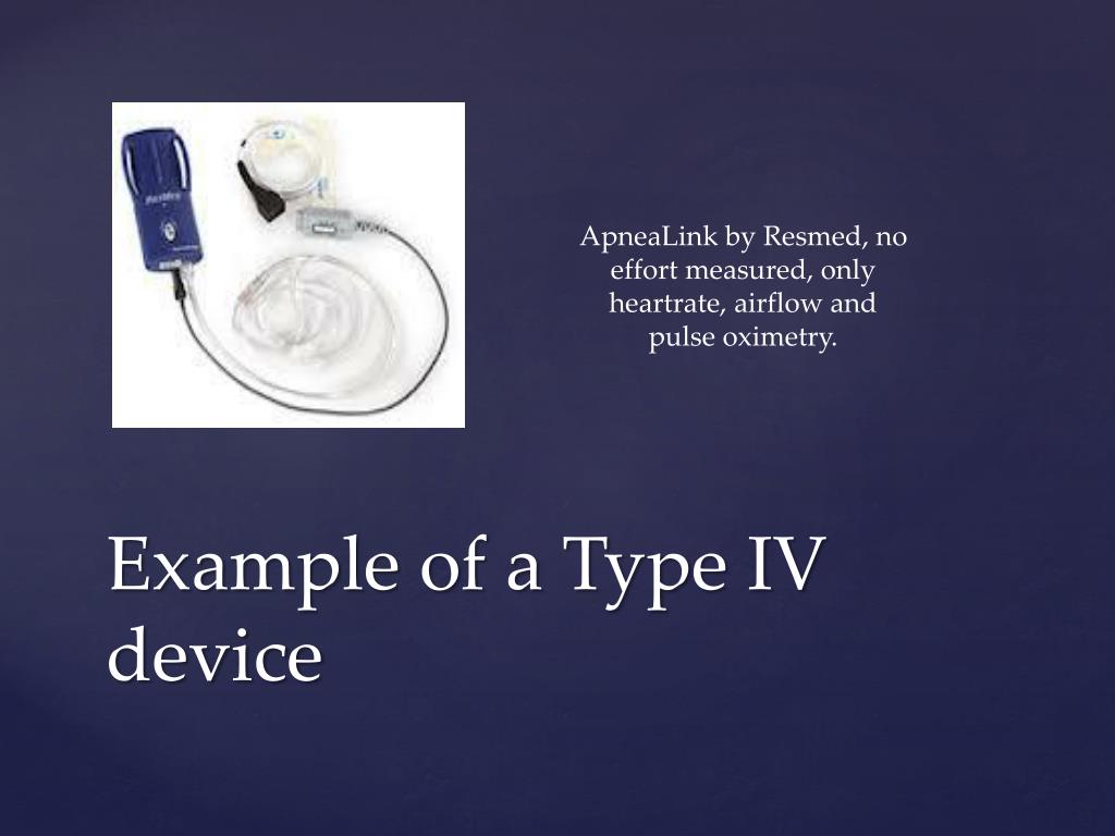 ApneaLinkby Resmed, no effort measured, only heartrate, airflow and pulse oximetry. Example of a Type IV device