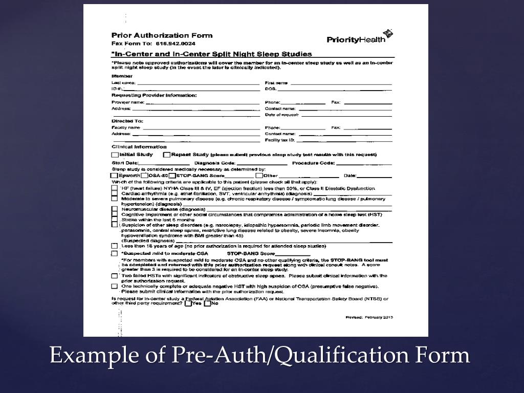 Many Insurance Payers are now requiring prior authorization for sleep testing • Requirements may include that the pt have a co-morbid condition, i.e. hypertension, CHF, COPD • May require the physician to fill out a qualification form • Depending on the conditions of the form the patient may be required to proceed with HST, and traditional in center polysomnogram denied. Insurance Payer Impacts