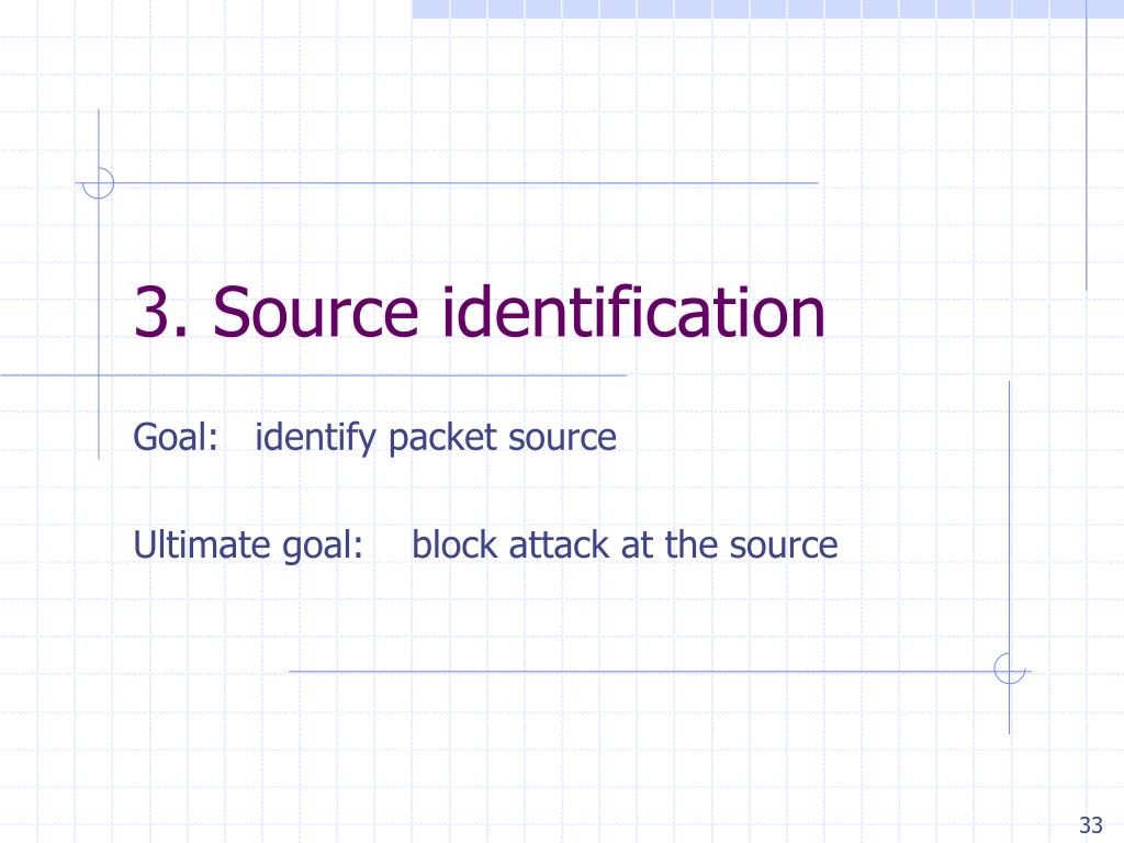 3. Source identification Goal: identify packet source Ultimate goal: block attack at the source