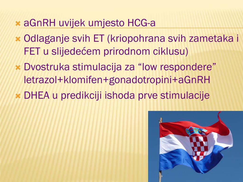 aGnRH uvijek umjesto HCG-a Odlaganje svih ET (kriopohrana svih zametaka i FET u slijedećem prirodnom ciklusu) Dvostruka stimulacija za “low respondere” letrazol+klomifen+gonadotropini+aGnRH DHEA u predikciji ishoda prve stimulacije