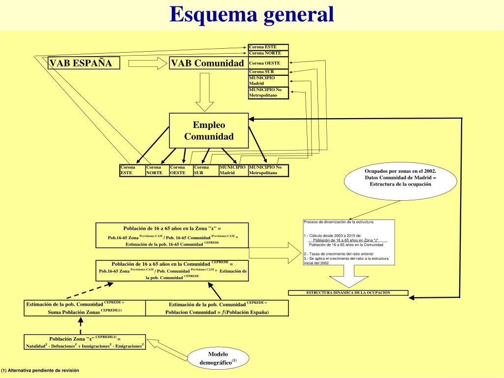 Crecimiento demográfico Madrid Pobl. ocupada 2004 Pobl. Total 2004 Crecimiento vegetativo Tasas natalidad y mortalidad por sexos y edades Crecimiento población ocupada Tasa actividad 16-65 años Trabajo transfronterizo Pobl. ocupada 2014 Pobl. necesaria 16-65 años Estruct. poblacional por edades Población 2014 por crecimiento demográfico autónomo Pobl. necesaria Total 2014 Inmigración neta estimada 2004-2014